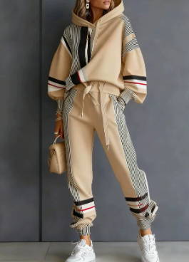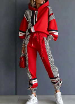 Ensemble décontracté pour femme avec pantalon à manches longues et capuche imprimée