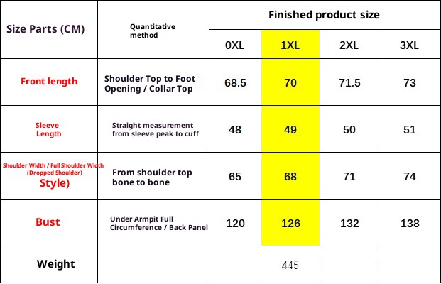 Taille : 0XL, 1XL, 2XL, 3XL